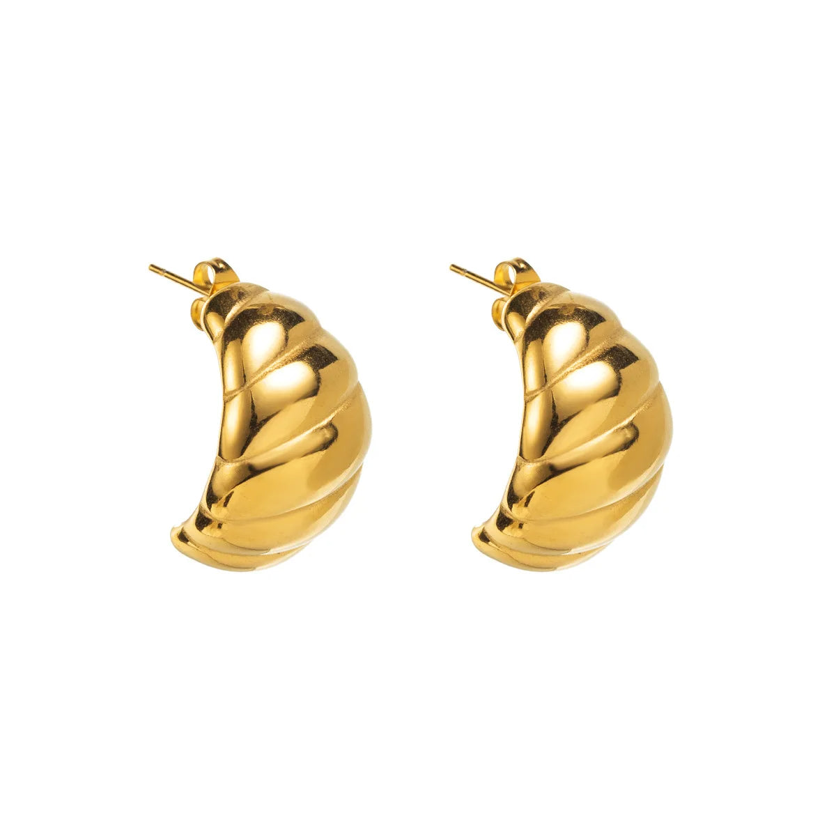 The Chiara Earrings draw inspiration from the timeless elegance of French design with their chic croissant-inspired shape. These earrings feature a distinctive, textured finish that creates a sense of refined sophistication, adding an effortlessly stylish touch to any look. Perfect for adding a touch of Parisian flair, they elevate both casual and formal outfits with their unique and graceful silhouette.