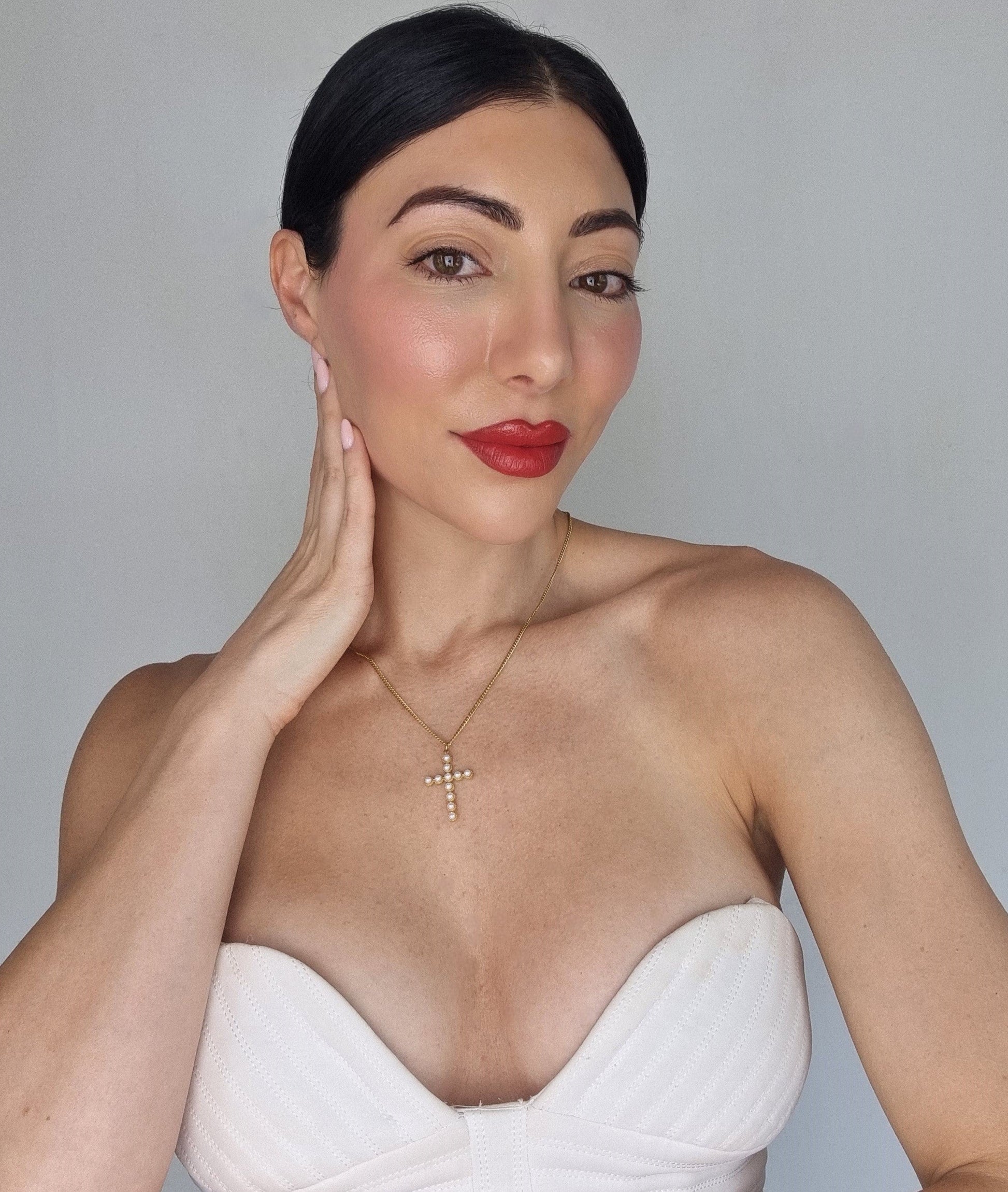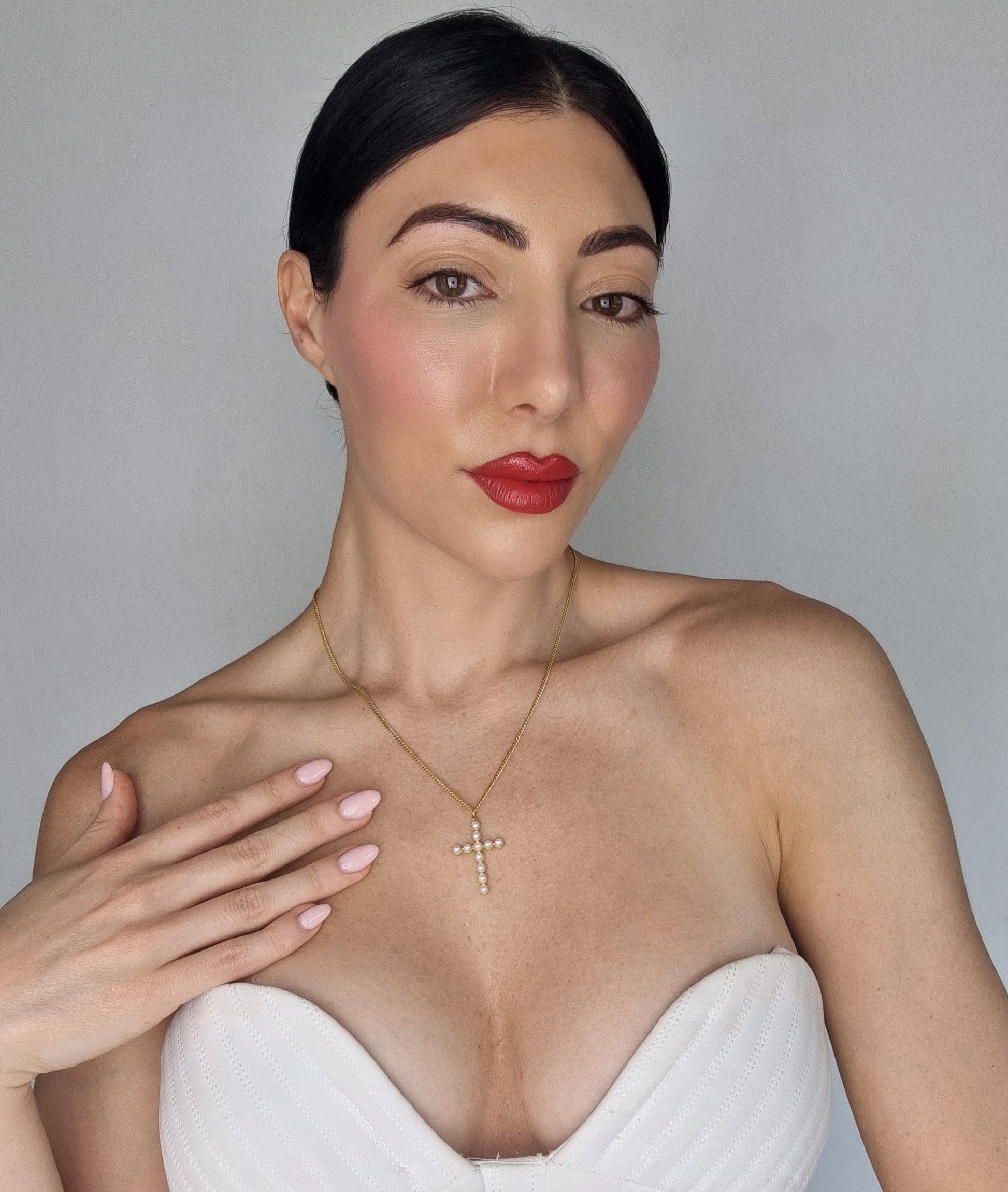 The Pearl Cross Necklace embodies understated elegance, featuring a fine cable chain adorned with a beautifully crafted imitation pearl cross pendant. This refined design blends classic beauty with modern minimalism, making it a meaningful yet effortlessly stylish piece for any occasion.