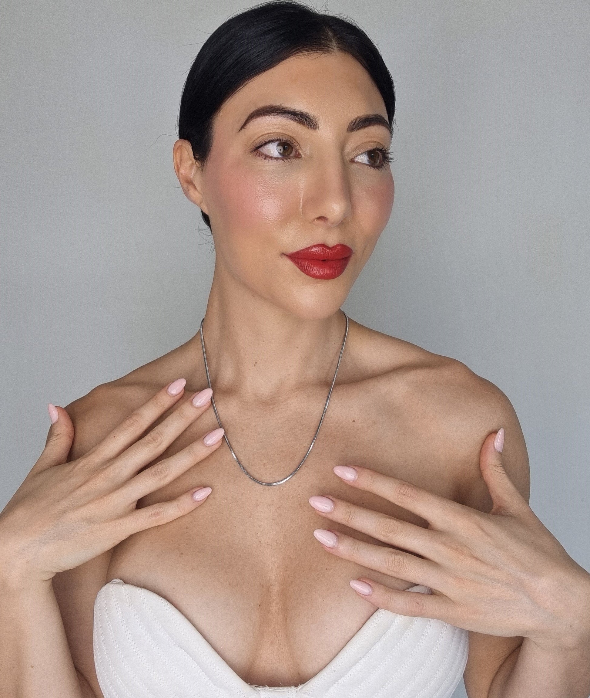 The Mini Herringbone Necklace is a refined take on a timeless classic, featuring an ultra-slim 0.2mm design that drapes effortlessly along the neckline. With its fluid, high-shine finish, this delicate piece adds a subtle touch of elegance, making it the perfect foundation for layering or a minimalist statement on its own.
