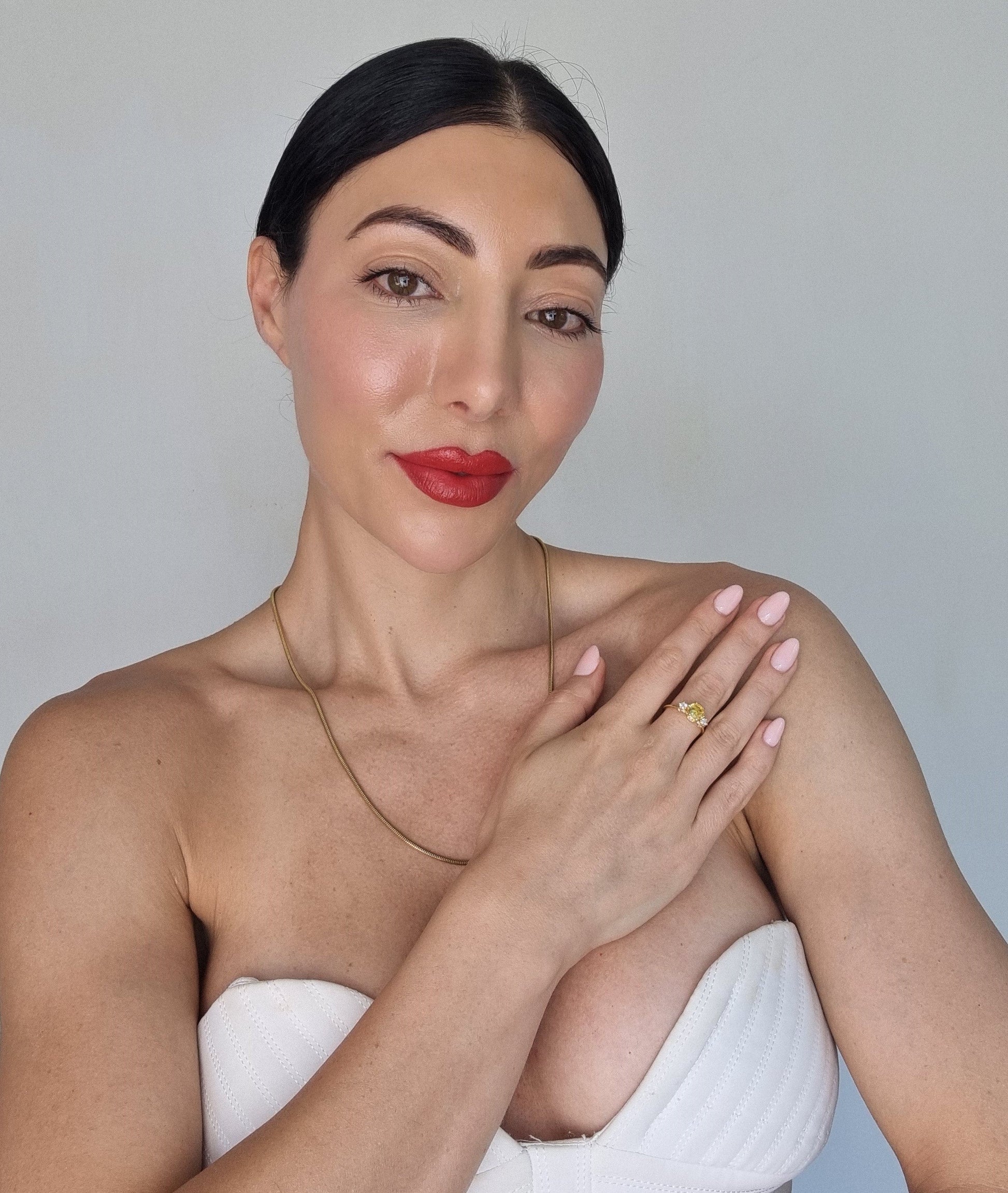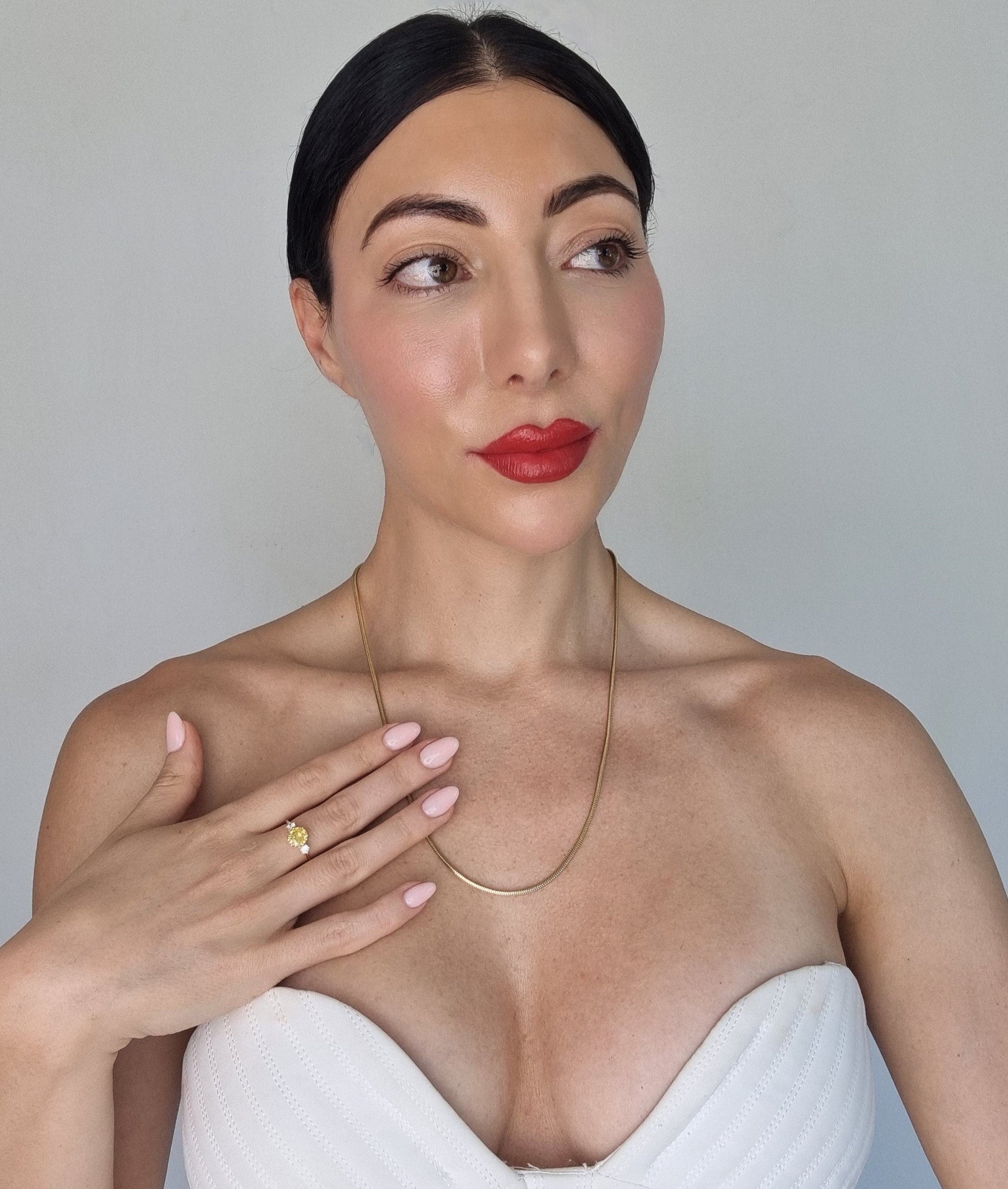 Our Love Ring is a captivating statement piece, featuring a bold, radiant yellow center stone that exudes warmth and energy. Flanked by two delicate white stones on each side, this ring creates a stunning contrast that enhances the beauty of the yellow stone, making it truly eye-catching. The harmonious blend of vibrant colour and subtle sparkle brings a touch of sophistication to any outfit, whether worn alone or stacked with other pieces.